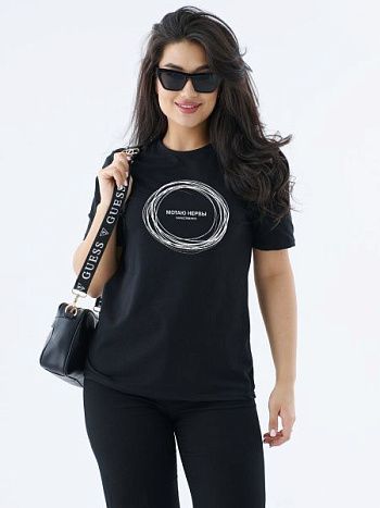 Футболка женская черная с логотипом Мотаю нервы