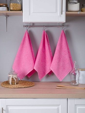 Набор махровых полотенец 3 шт (40*70) розовый, полоса