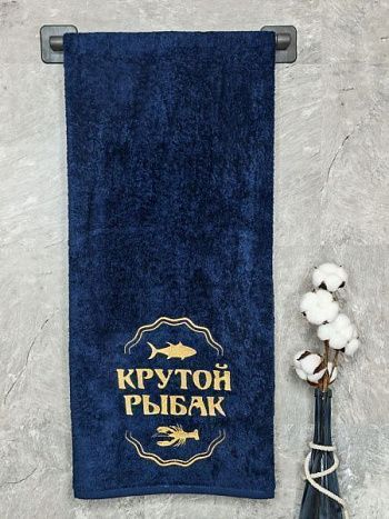 Полотенце с вышивкой 70*140 "Крутой рыбак" темно-синее