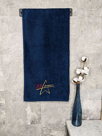 Полотенце с вышивкой 70*140 "23 февраля" темно-синее