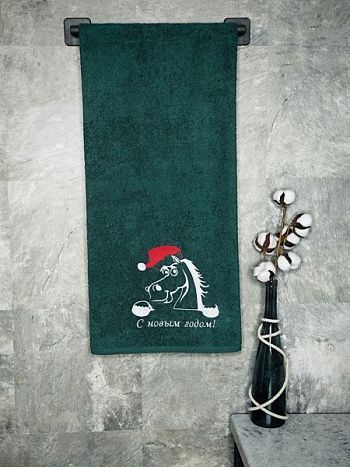 Полотенце с вышивкой 70*140 "Новый год Лошадь" малахит