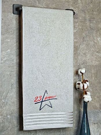 Полотенце с вышивкой 70*140 "23 февраля" светло-серое