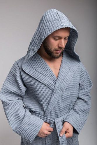 Халат вафельный PandaHug Оrlando серый с капюшоном