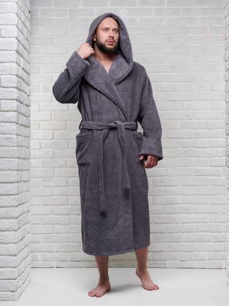 Халат мужской махровый PandaHug с капюшоном, темно-серый