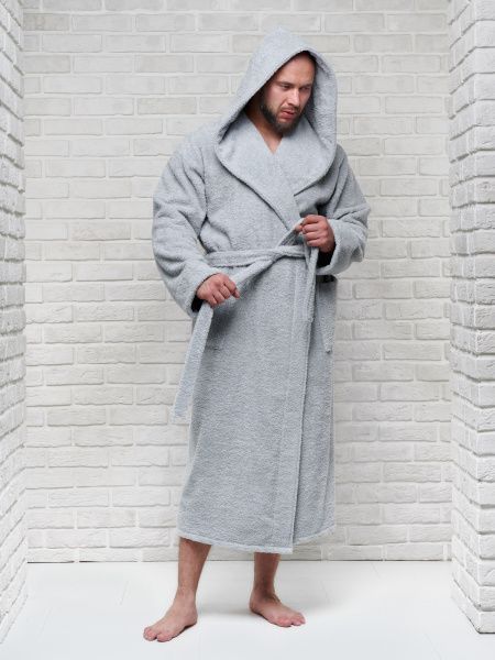 Халат мужской махровый PandaHug с капюшоном, светло-серый