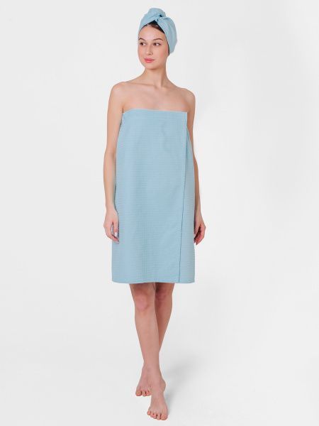 Набор для сауны вафельный голубой