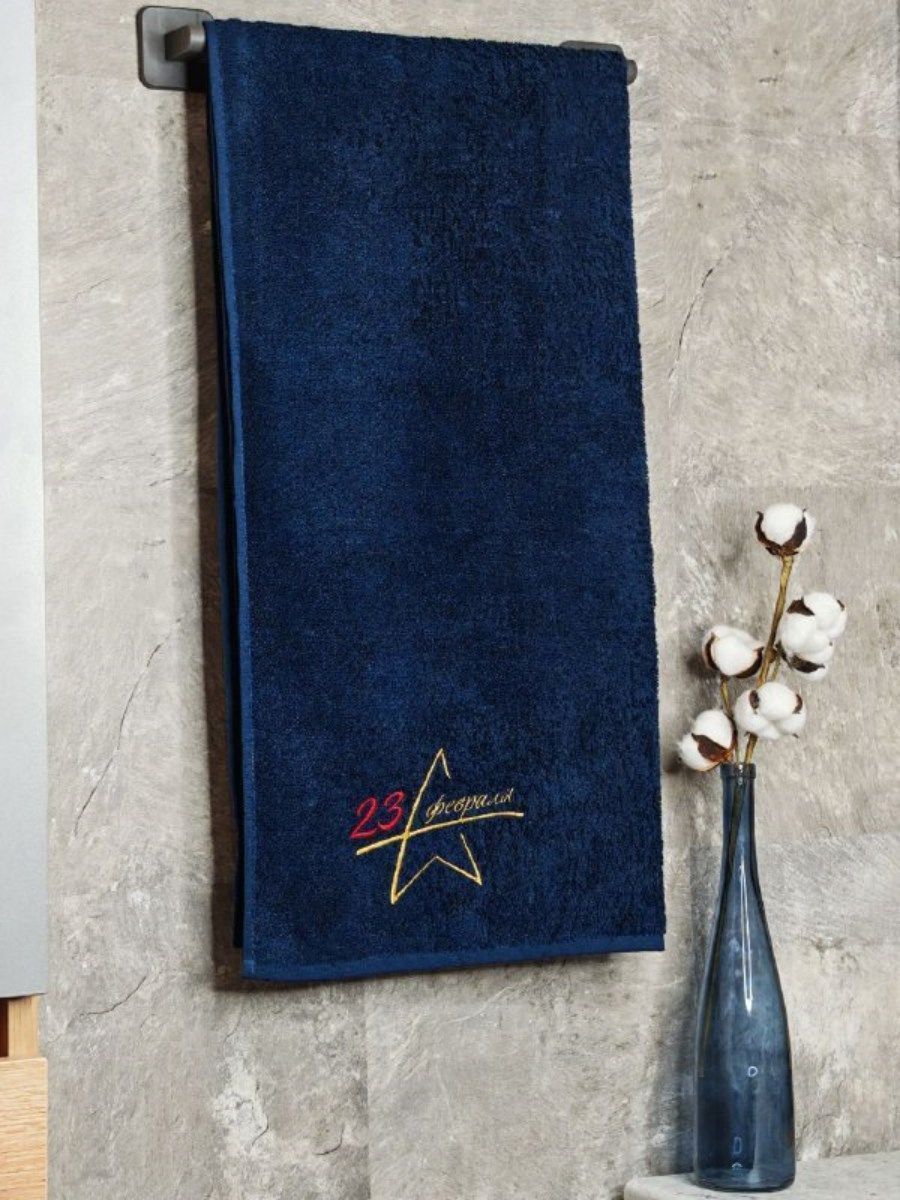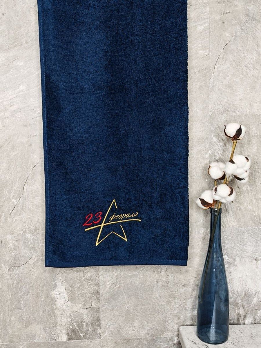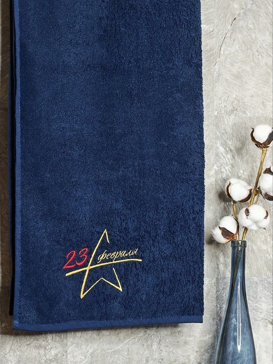 Полотенце с вышивкой 70*140 "23 февраля" темно-синее POL/23февраля_т.синий