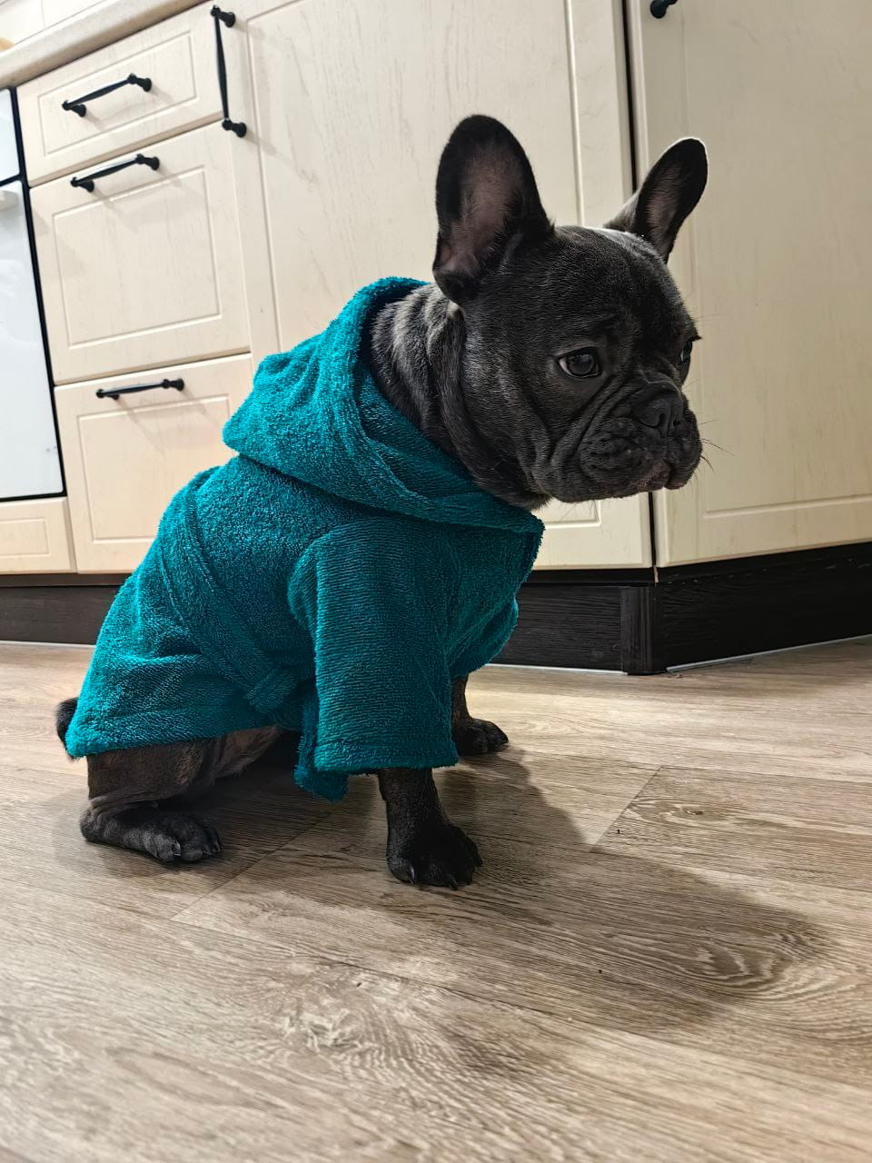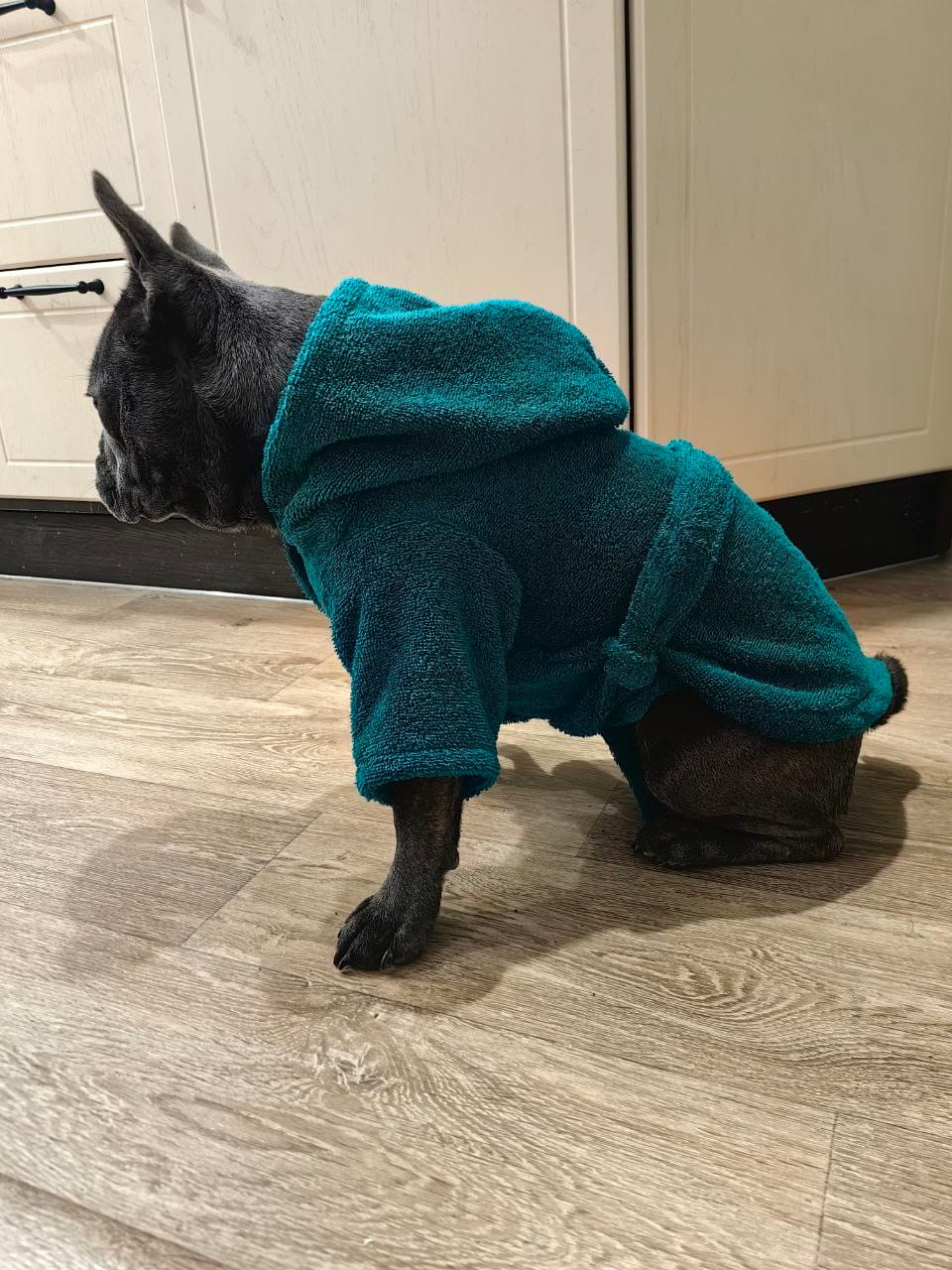 Посадка: Халат не сковывает движения, обеспечивая питомцу полную свободу.