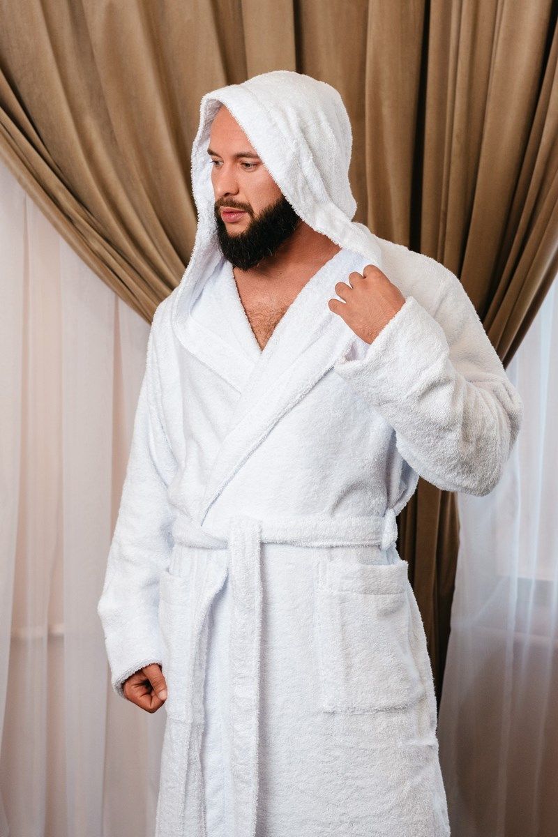 Халат махровый с капюшоном, белый