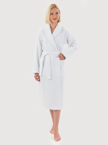 Халат женский вафельный PandaHug Оrnella белый шаль