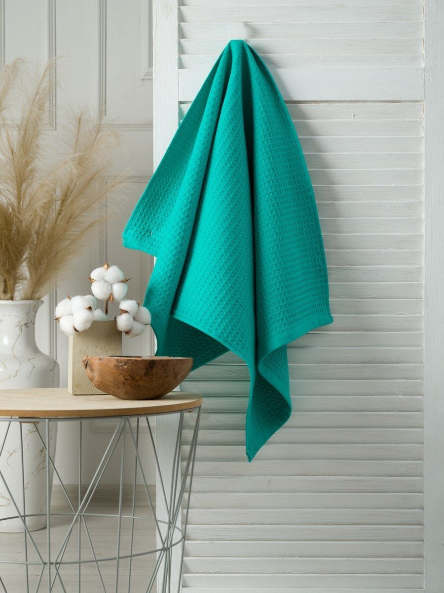 Полотенца изготовлены из вафельной ткани высокого качества с рельефным безворсовым плетением в виде крупной мягкой клетки. Эти полотенца намного толще и пышнее привычных вафельных полотенец.  Благодаря особому плетению и крупной клетке ткань получилась мягкой и очень воздушной. При соприкосновении с кожей она не вызывает раздражения или неприятных ощущений. Нежное как облачко, это полотенце идеально подойдет малышам и людям, которые ценят свой комфорт. Вафельное полотно произведено из 100% хлопка на современном  итальянском оборудовании в Республике Узбекистан. Оно обладает высокой прочностью и износостойкостью, что обеспечивает изделиям из него долгий срок службы и практичность в использовании. Даже после многократных стирок изделие не линяет, не деформируется и полностью сохраняет свои свойства.