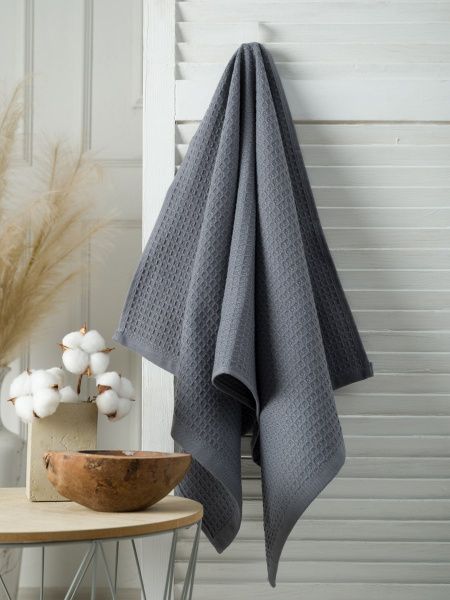 Полотенце вафельное серое