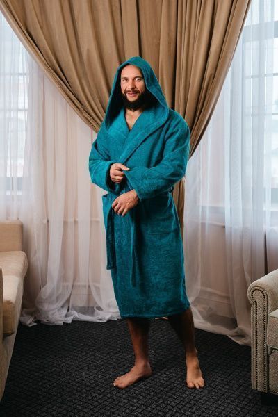 Махровая ткань из 100% хлопка идеально согревает и быстро высушивает кожу после водных процедур. Капюшон убережет шею и голову от сквозняков и резкой смене внешней температуры, особенно актуально при посещении бани в холодное время года.