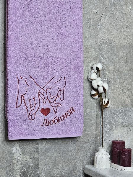 Полотенце с вышивкой 70*140 "любимой" сиреневое без бордюра POL/любимой/715