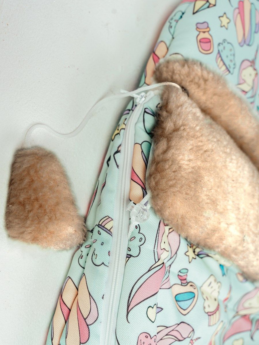 Конверт детский меховой на выписку "Единороги" 82*42 (до 6 мес), 100*46 (до 1 года)