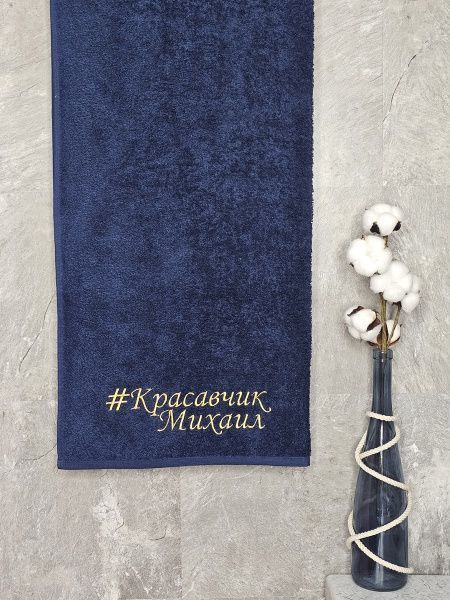 Полотенце с вышивкой 70*140 "красавчик" Михаил темно-синее POL/красавчикМих/2128