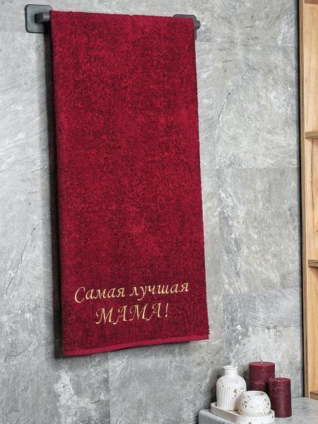 Полотенце с вышивкой 70*140 "самая Лучшая мама" бордо